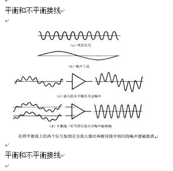 专业应用时,间或还用一只变压器来起到差分放大器的作用,也即通过两根导线中的信号之差,去抑制对两根导线说来为共有的信号。民用音响器材则只用差分放大器而不用变压器。但是工作原理还是一样的。