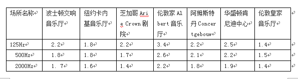在混响时间(reverbdme)的调节上,就看现场需要模拟怎样的环境。以下是一些著名音乐厅的不同频率下的不同混响时间表