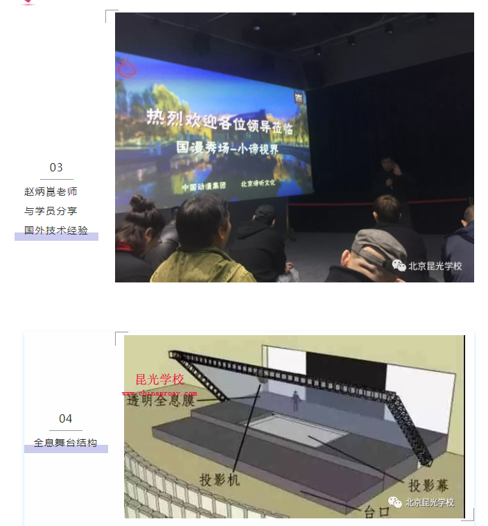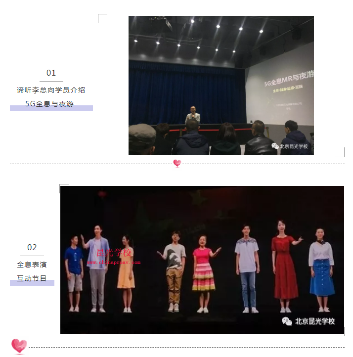 同学们在第二天下午来到了北京谛听文化传媒公司,由谛听文化李总向同学们介绍了国内全息影像技术发展概况,之后欣赏了一场由全息影像各种类型互动表演的舞台节目片段(AR,MR,5G),剧场演出创新融合与促进优化产业发展。