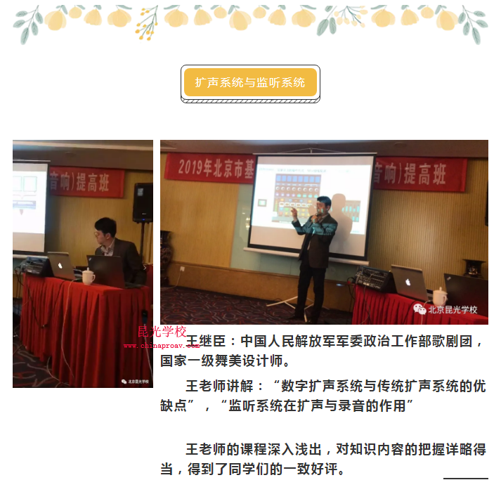 王老师讲解:“数字扩声系统与传统扩声系统的优缺点”,“监听系统在扩声与录音的作用”