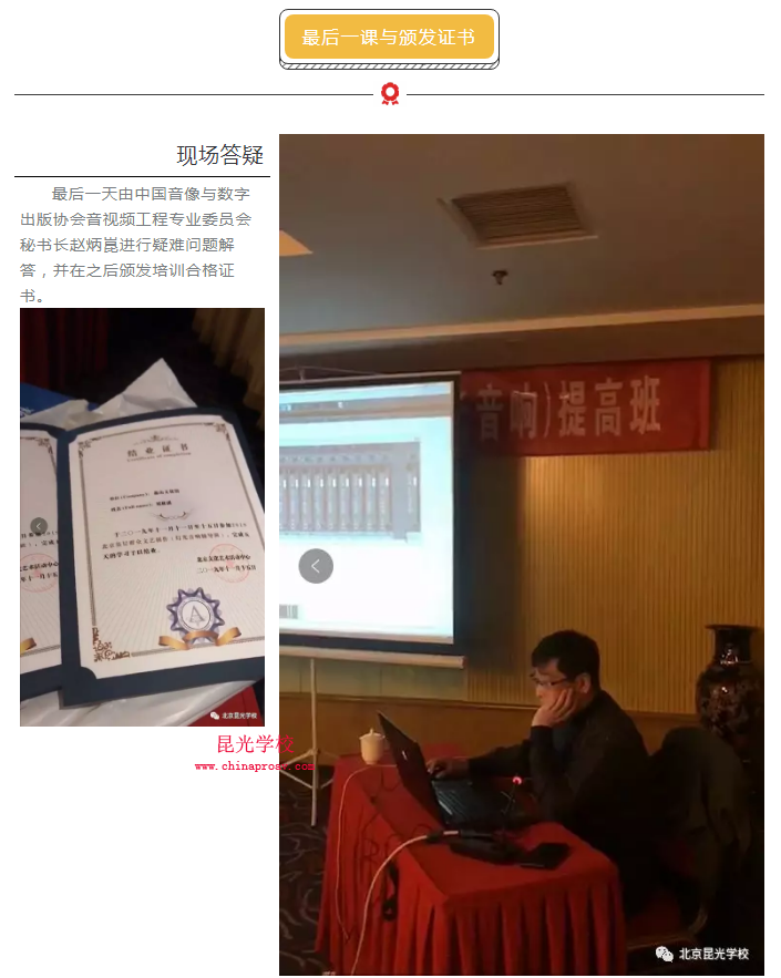 最后一天由中国音像与数字出版协会音视频工程专业委员会秘书长赵炳崑进行疑难问题解答,并在之后颁发培训合格证书。